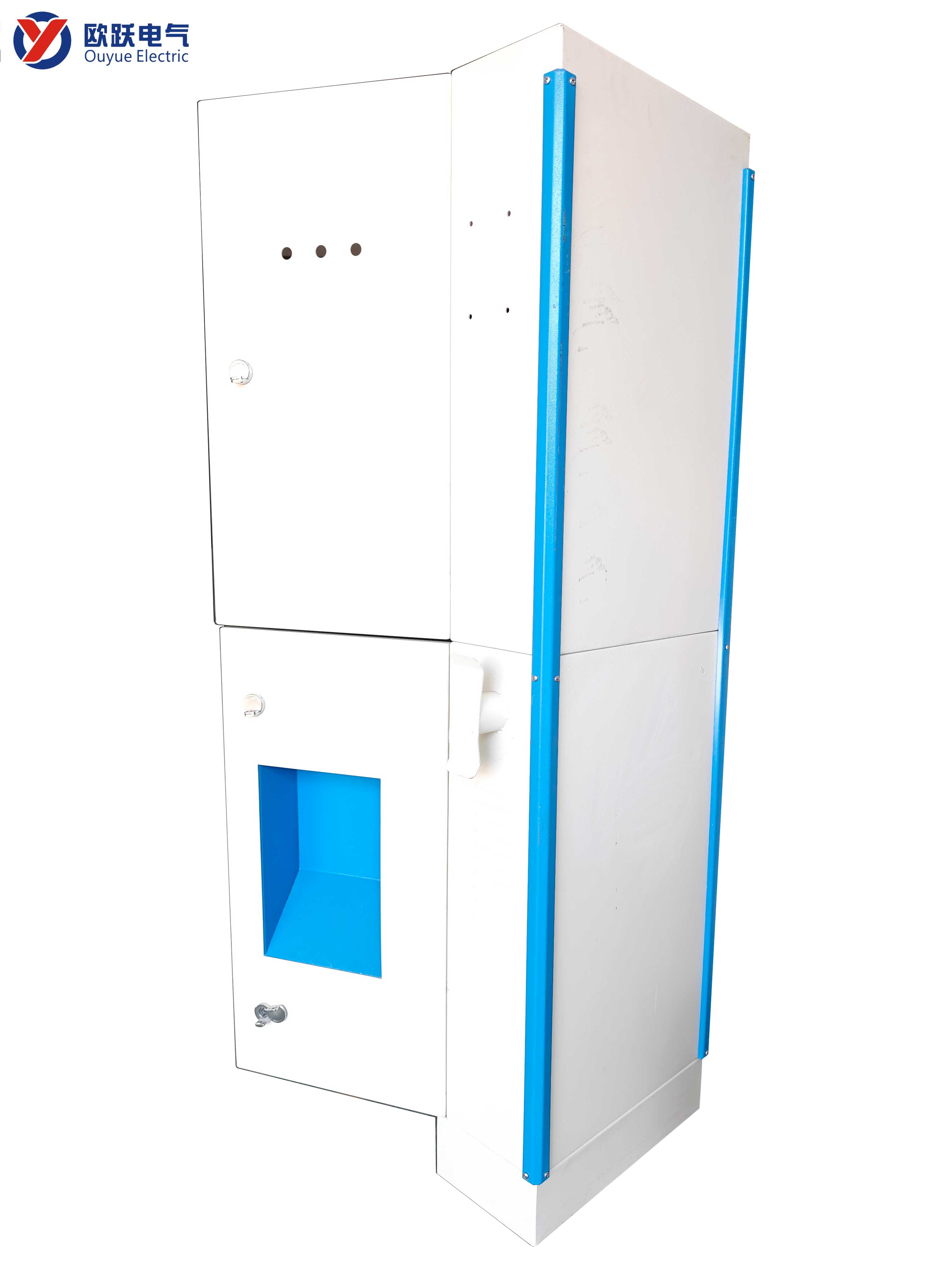 Bei diesem Modell handelt es sich um einen maßgeschneiderten Stromzählerkasten aus verzinktem Stahlblech, der speziell für neue Energieladesäulen entwickelt wurde. Die doppelschichtige Struktur mit oberen und unteren Anschlüssen bietet ausreichend Platz für die Verkabelung und ermöglicht die enge Installation elektrischer Geräte im Stromzählerkasten. Der Kofferaufbau besteht aus hochfestem verzinktem Stahlblech, das hervorragende Korrosionsschutzeigenschaften und eine lange Lebensdauer aufweist. Das Erscheinungsbild des Produkts weist ein individuelles blau-weißes Farbschema auf und ist mit eingebetteten Handgriffen sowie Belüftungs- und Wärmeableitungslöchern auf beiden Seiten ausgestattet, was nicht nur einen tragbaren Betrieb gewährleistet, sondern auch eine hervorragende Wärmeableitungsleistung aufweist. Das Gesamtschutzniveau des Produkts ist hoch, wodurch die langfristigen stabilen Betriebsanforderungen von Ladesäulen im Freien erfüllt werden können.